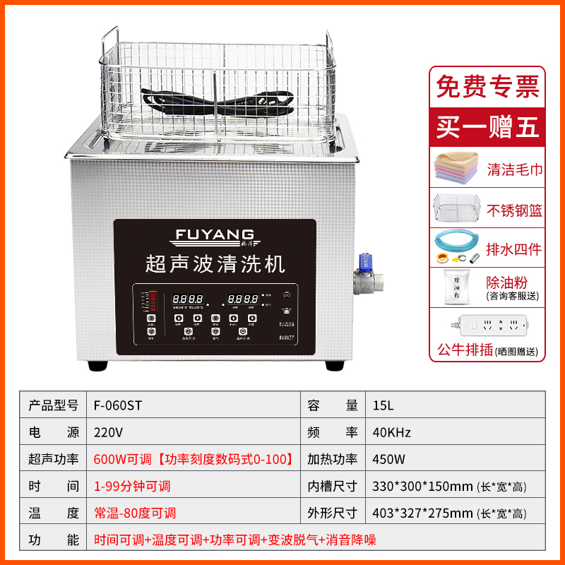 F-060ST | 15L 360W/480W/640W 数码式功率可调超音波清洗机
