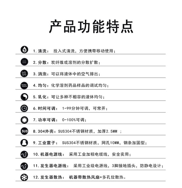 实验室高校研究所应用:碳纤维分散扩散,化学溶液的搅拌、均匀、加速反应,细胞粉碎,产品粉碎,物质分散(悬浮液制备)和凝聚;
