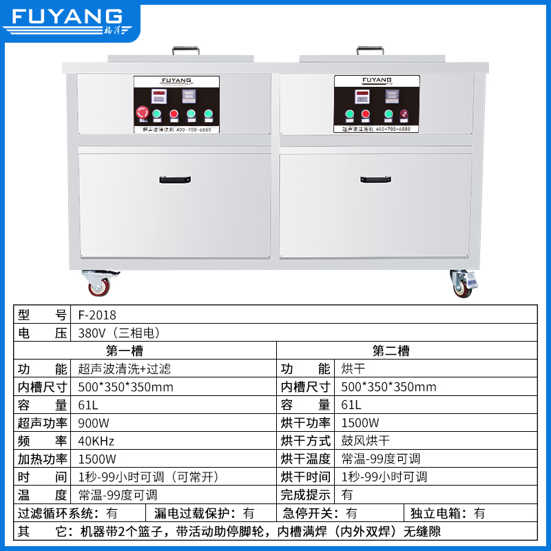 F-2018 | 61L 900W 双槽循环过滤超声波清洗机(可定制)