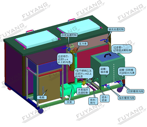 F-2031 | 96L 1500W 工业用带过滤循环双槽超声波清洗机