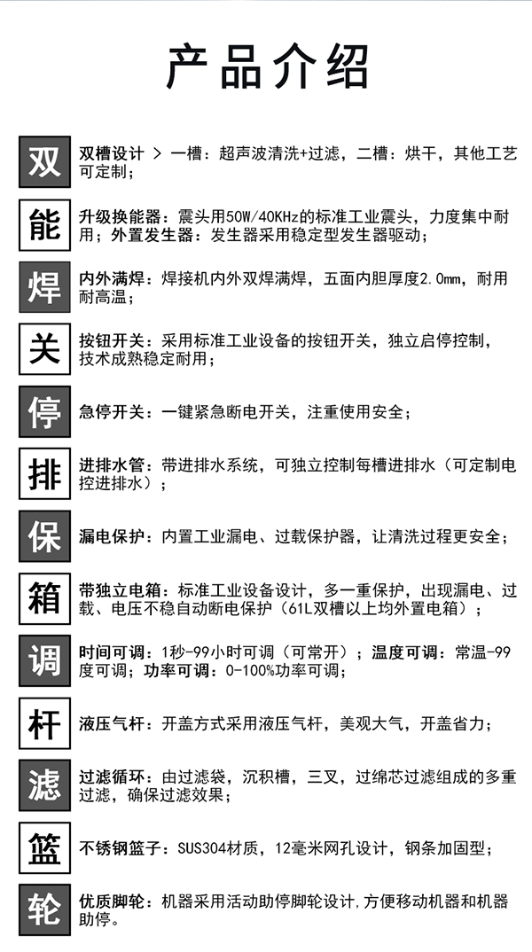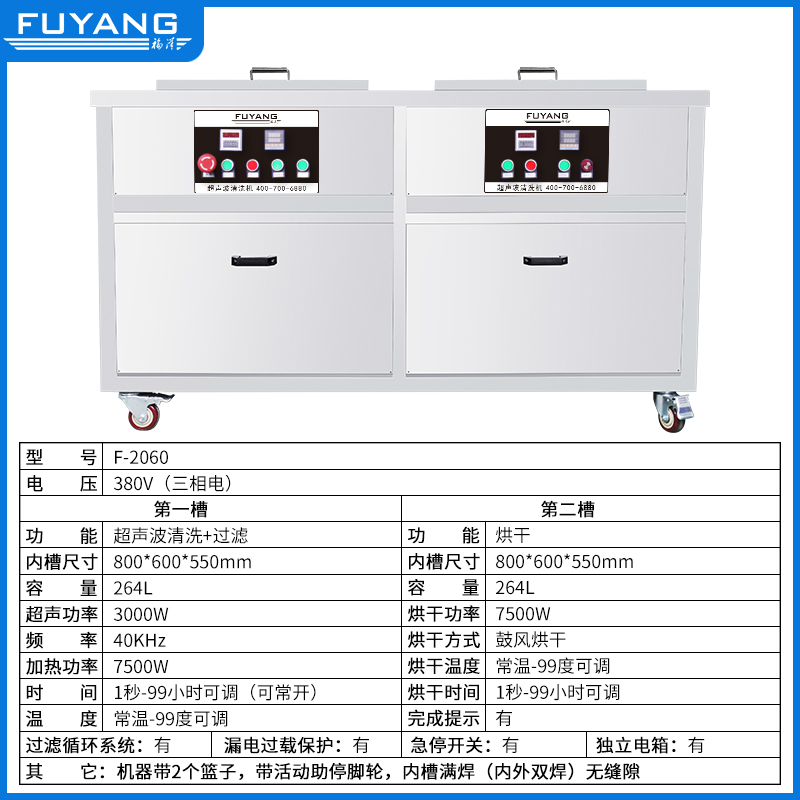 F-2060 | 264L 3000W 带过滤循环超声波清洗烘干机(支持定制)